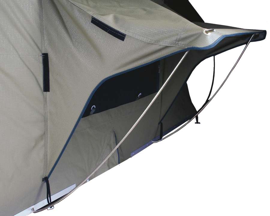 The add-a-room ripstop canvas panels are made to height and come with a full opening door and wheaterproof window with musquito net, zip-open rear panel and ground sheet.