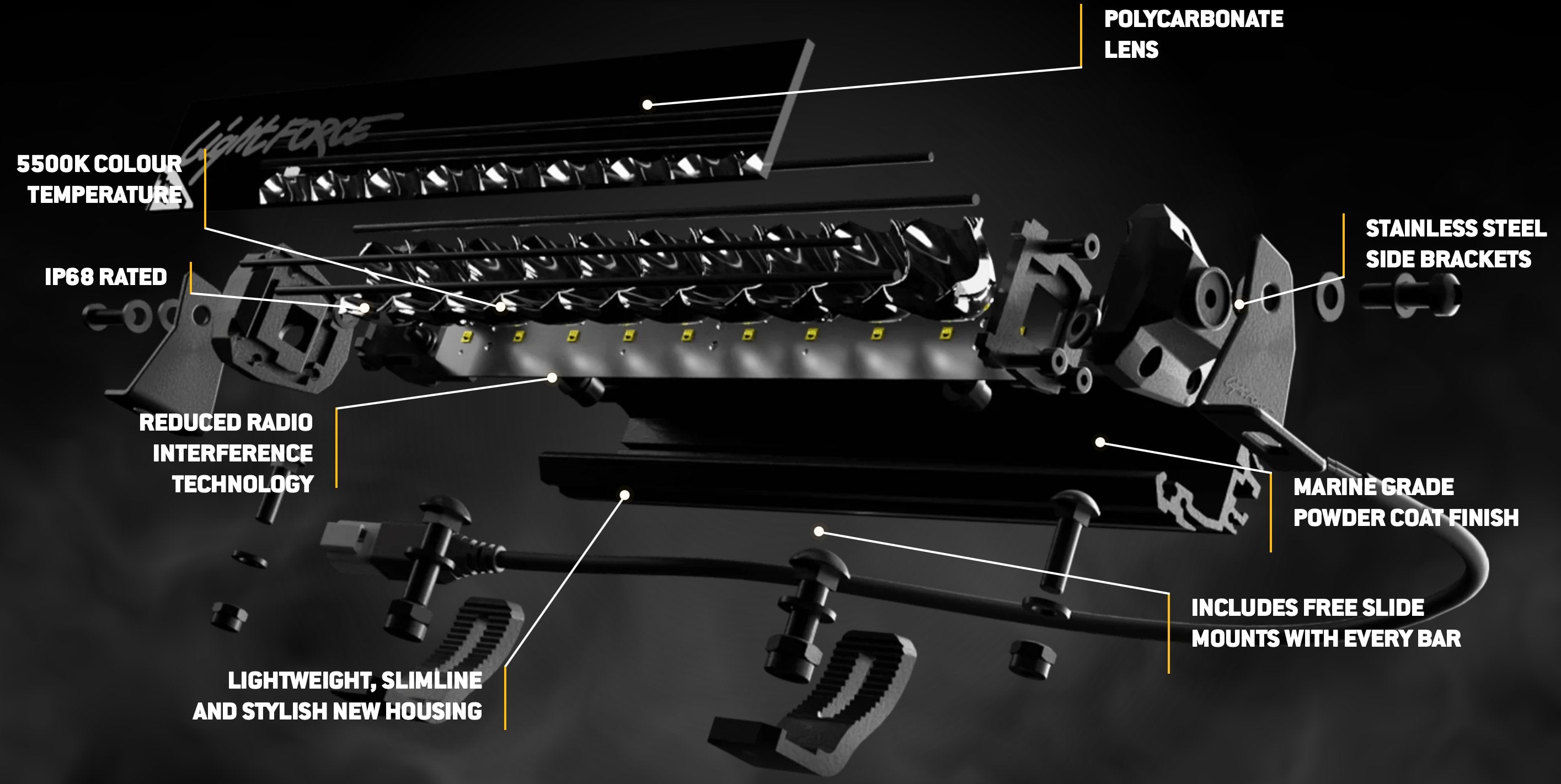 The new range of VIPER Light Bars are up to 25% slimmer and 25% less in weight than previous Lightforce Light Bars.