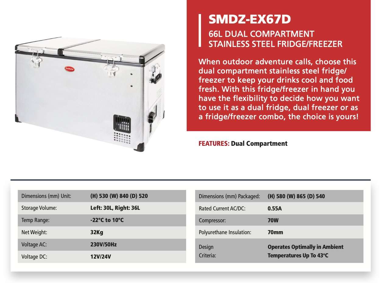 66L Dual Compartment Stainless Steel Fridge/Freezer AC/DC by Snomaster - Snomaster - SMDZ-EX67D