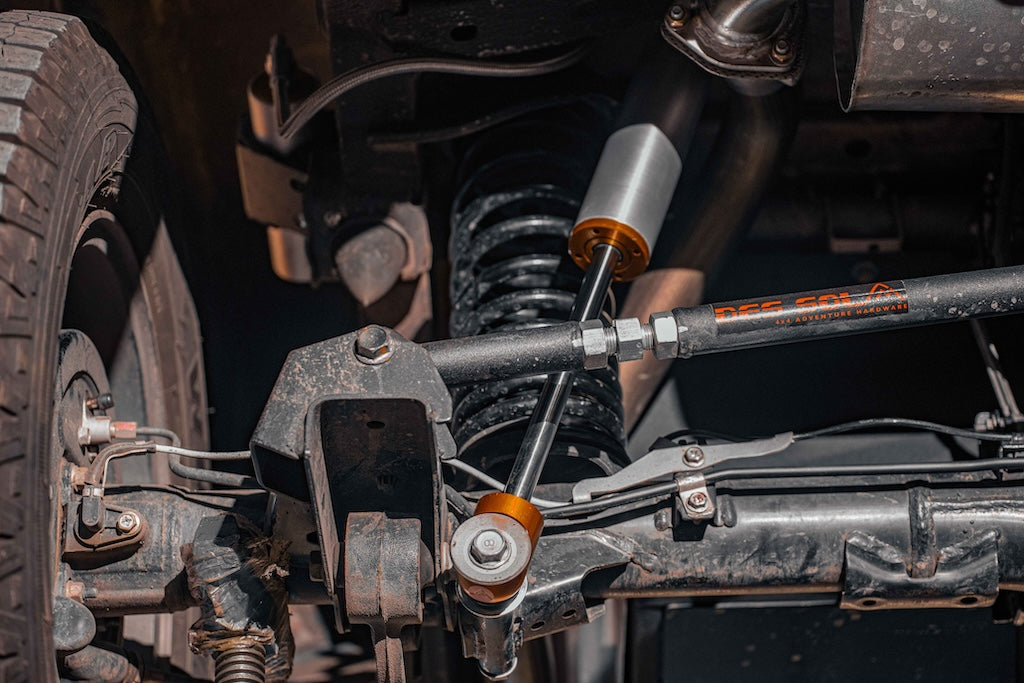 This modular EV1 Series shock absorber has been designed, developed and manufactured locally by Des Sol where 99% of the parts are locally available. This means that support turnaround times will be typically one week or a few days in the case of an emergency. This EV1 Series shock absorber is not just another throw away twin tube design that has just recently flooded the market but a precision made mono shock absorber that has an unparalleled, 8 year limited lifetime warranty provided the 2 year service intervals are adhered to. This large bore, mono tube shock absorber with external reservoir boasts a thick walled, hard anodised, Aluminium body for excellent thermal regulation, drastically increasing reliability under punishing conditions and offering unparalleled protection against harsh African outdoor conditions. The large oil volume available also reduces shock fade in extreme conditions. The shock absorber is also rebuildable, serviceable and tuneable, meaning if your vehicle weight changes with modifications (heavier or lighter), you can have your shock re-valved accordingly. Upgrading to our latest shock absorber designs will also be quick, easy, and cost effective.
