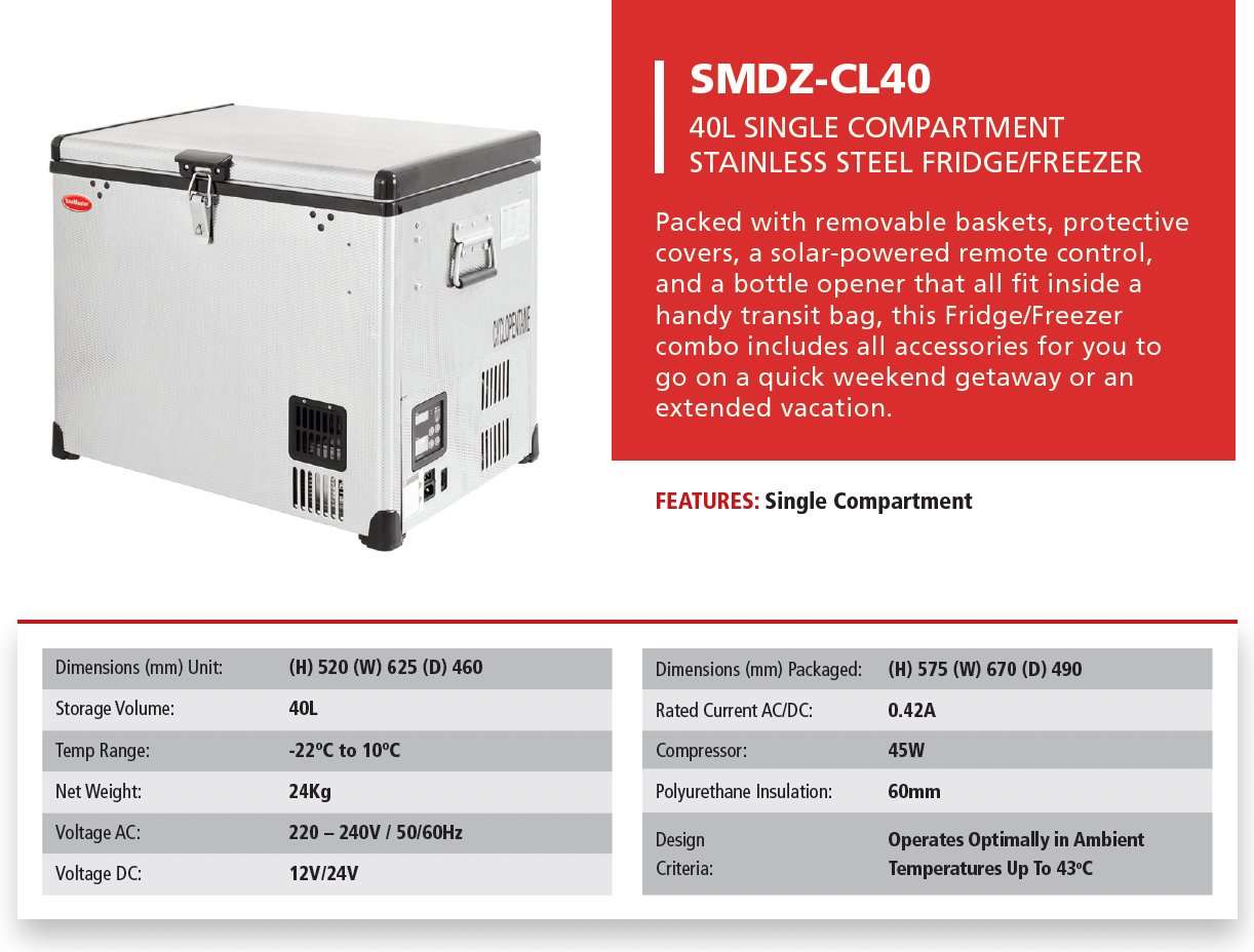40L Single Compartment Stainless Steel Portable Fridge/Freezer AC/DC by Snomaster
