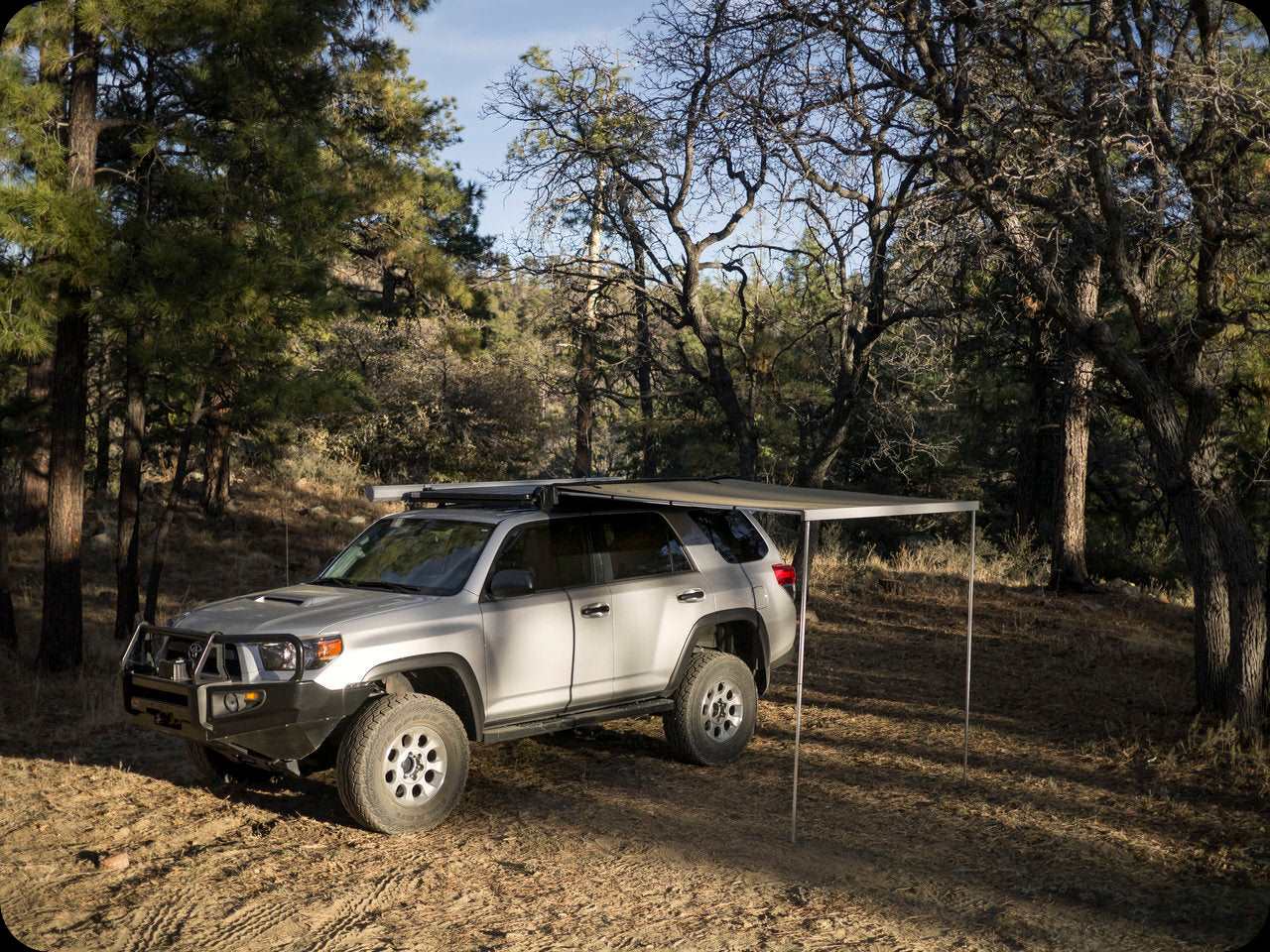 The awning can be set up in less then a minute thanks to the self-contained aluminium framework that easily rolls out and locks into position with a simple adjustable twist locking pole mechanism.